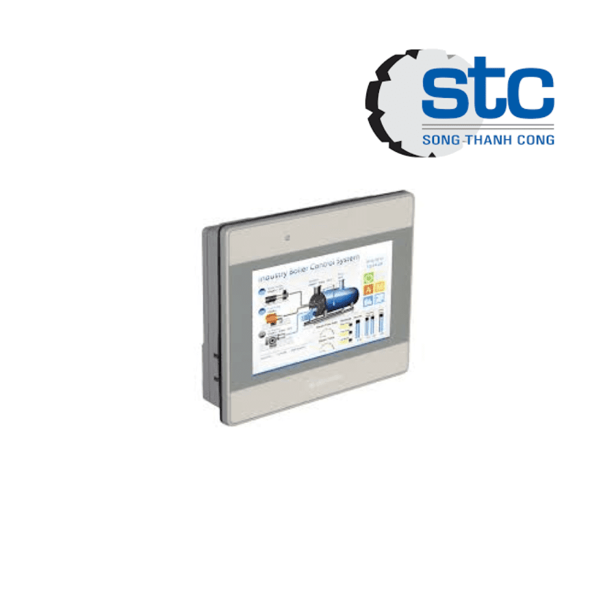 HMI này không phải công tắc cơ, mà là thiết bị giao tiếp người–máy với kích thước màn hình hiển thị 5.7 inch. MT8050iE giúp người vận hành theo dõi trạng thái, nhập dữ liệu và điều chỉnh tham số trực tiếp.